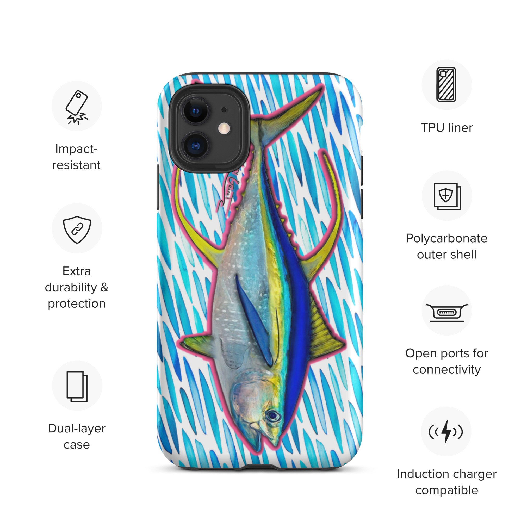 Pink Tuna Outline Tough iPhone case